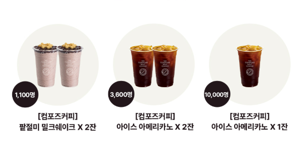 - 아이스 아메리카노 100% 무료 쿠폰 : 월간 이벤트 기간에 선착순 제공 (예: 8월 12일~28일)
